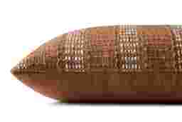 This pillow features a transitional broken stripe pattern that acts as a sophisticated neutral. Because it belongs to the beige color family with rust red accents, it pairs exceptionally well with ivory, cream, or charcoal grey upholstery. To achieve a curated "designer" look, follow the 2-2-1 rule: use two of these patterned pillows at the ends, two solid-colored pillows in a complementary tone, and one smaller lumbar pillow in the center.