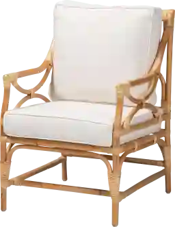 This chair’s natural finish and solid-colored cushions provide a versatile foundation for bohemian or coastal aesthetics. To create a cohesive look, our stylists recommend pairing it with other organic textures like a jute rug or light wood tables. For a pop of contrast, you can layer it with a textured accent pillow in earthy tones like terracotta or deep sage green.