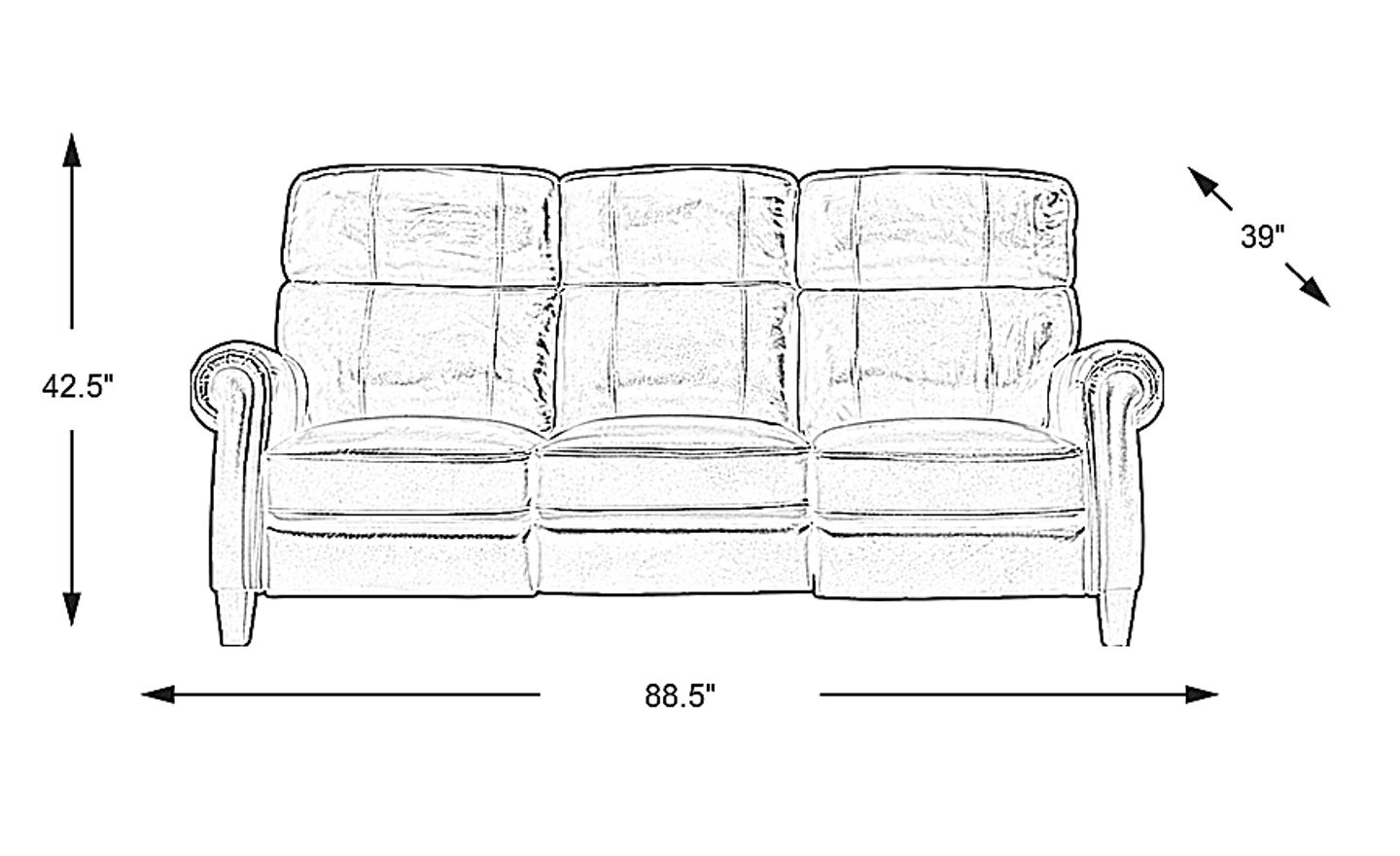 Introduce beautiful, traditional style to your living space with the Adorelli sofa. This piece is upholstered in luxurious chocolate colored top grain leather where the body touches for a sleek look and wonderful feel. This sofa features dual power reclining control that allows you to set your desired position of both the head and footrests. Welted seams and roll arms give this piece a classic feel that is always fashionable. Upholstery: Top grain leather where the body touches with vinyl sides and backs.