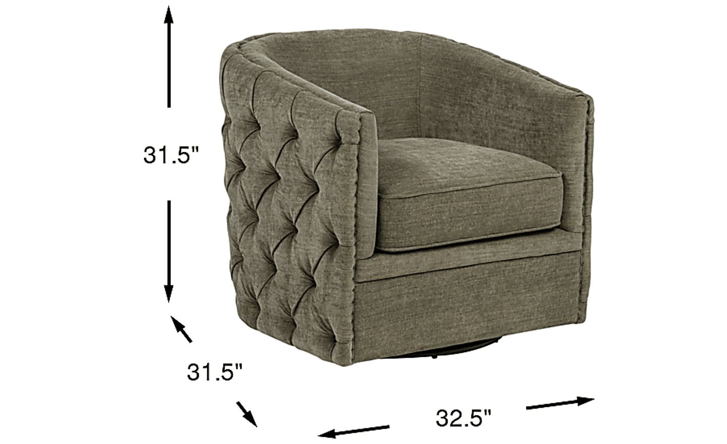 With a compact footprint of 32.50"W x 31.50"D, this chair is an excellent choice for space-conscious layouts. Its barrel-style silhouette provides a cozy, enclosed feel without the visual bulk of a traditional armchair. The smooth 360-degree swivel base is particularly beneficial for multi-functional rooms, allowing you to easily rotate the seat between a conversation area and a television without moving the furniture.