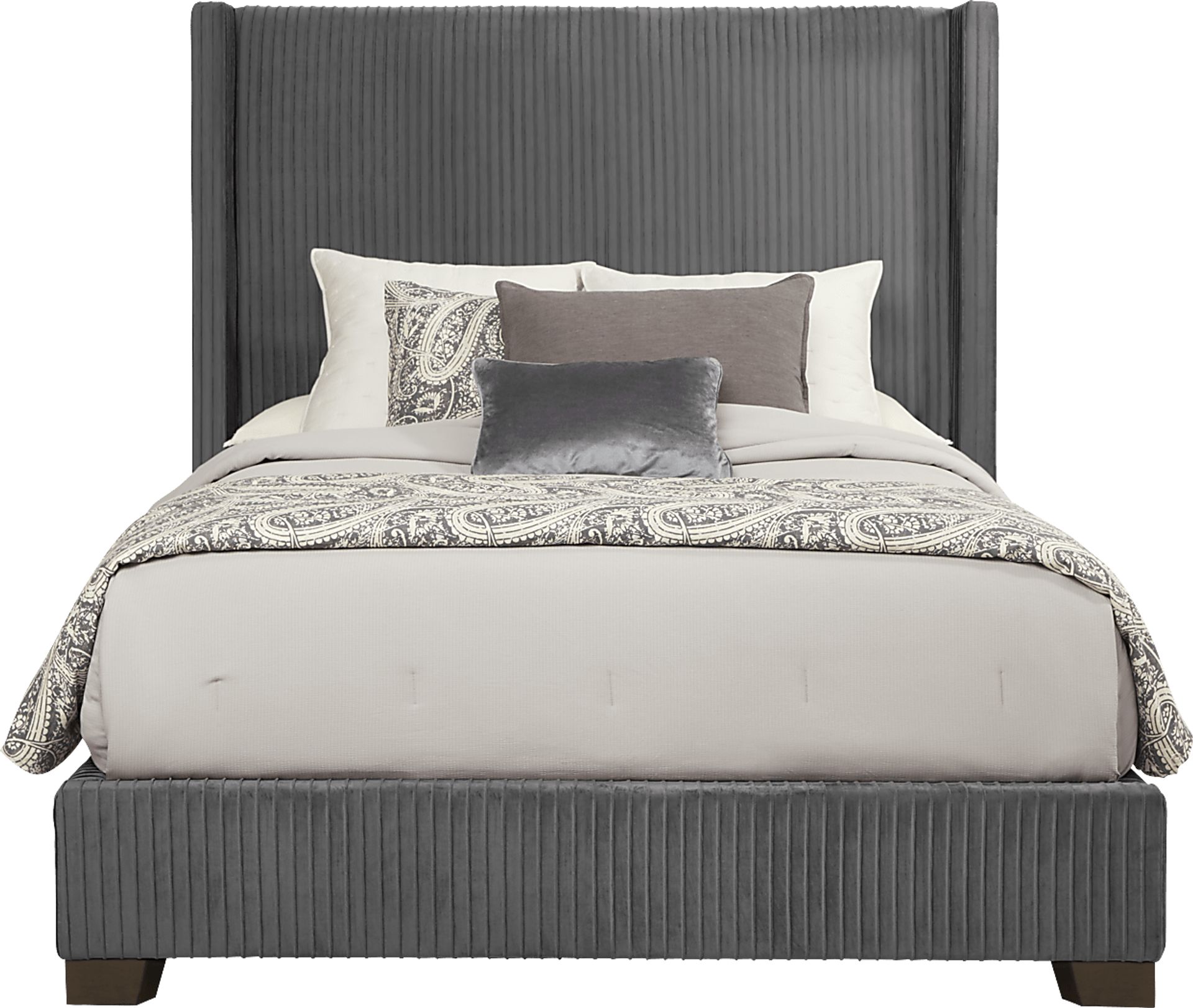 Bring a touch of contemporary charm to your bedroom with the Adrie queen bed. The upholstered headboard and footboard feature pleated detailing, giving this piece a unique look that is pleasing to the eye. With its versatile gray color, this bed effortlessly blends in with a wide range of furniture setups and styles. Mattress and foundation (if required) sold separately.