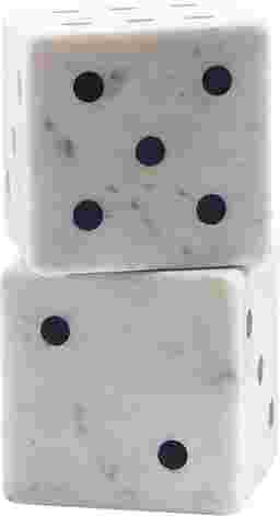 Add a Touch of Luxury with the Adwar white marble dice accent piece. Crafted from high-quality marble, this unique design features a stunning veiny pattern that gracefully swirls through the soft white stone, adding depth and character to your space. The contrasting black dots on each side of the dice bring a bold yet refined touch, creating a striking balance between elegance and playful sophistication. Perfect for a modern living room, office, or study, these dice make a statement as both a decorative object and a conversation starter. The natural veining in the marble ensures that each piece is one-of-a-kind, bringing individuality and luxury into any room. Whether you're an admirer of bold, unique design or simply seeking an elegant accent to enhance your space, this white marble dice accent piece is sure to add personality and style wherever it's placed. Customer assembly is required.