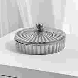 To preserve the striking silver finish and dynamic texture of this box, our care experts recommend regular dusting with a clean, soft cloth. If a deeper clean is necessary for stains or fingerprints, use a mild soap and water solution, but avoid harsh chemical cleaners or abrasive materials that could scratch or dull the fluted metal surface. Always ensure the piece is dried thoroughly to maintain its light-catching luster.