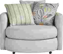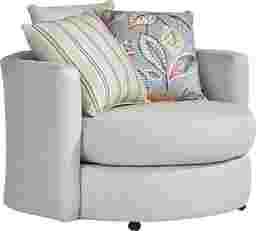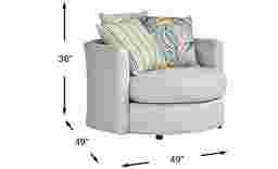 As handsome as the Greek Isles with casual luxury to match, the Aegean Place swivel chair fashions stunning simplicity with stylish serenity. Upholstered with woven bluestone fabric, this swivel chair's gorgeous silhouette is defined by a padded frame with a shapely seat that is rounded around the base. Accent pillows provide an irresistible final touch. Upholstery: 100% Polyester.