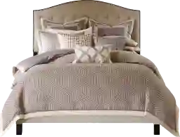 This bedding features a high-quality duvet-style construction where the overfilled insert is secured to the outer cover using inner ties and a hidden button closure. This construction method keeps the fill evenly distributed and prevents shifting without the need for visible bar-tacking lines, resulting in a smooth, clean face on the top of the bed.