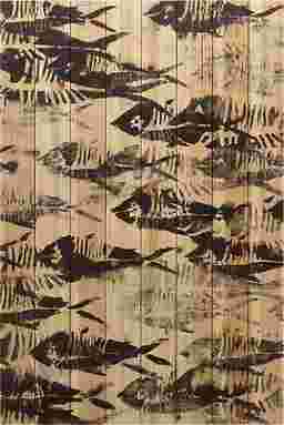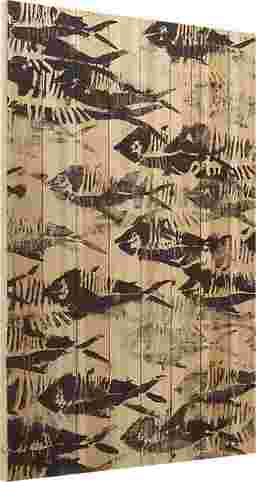 The Against The Current II artwork features a skeletal fish pattern which represents the bones of fossils long forgotten, recalls ancient times and the long history of the earth. These creatures, frozen in time, seem like ancient mariners plying seas from a bygone aeon. The use of black for the fossils and a clear background makes them all the more ghostly and alien. This thought-provoking piece which has a certain macabre fascination is perfect for any interior space.