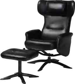 Make relaxation a higher priority with the sumptuous embrace of the Aguilay black accent chair and ottoman. This modern set includes one chair, and one footrest padded with plush foam and upholstered in smooth faux leather. The chair is fitted with a convenient pillow at the headrest as well as cozy armrests for superb comfort. The Aguilay features a 45 degree recline when desired. With modest yet graceful tufting on each piece, the Aguilay brings snug leisure to any setting. Customer assembly is required.