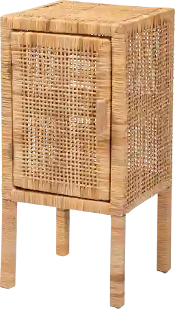 Bring the allure of a tropical haven to your bedside with the remarkable Ahlia brown nightstand. This handy piece is comprised of a sturdy mahogany wood frame wrapped in natural rattan. Two shelves behind the door provide space to organize bedside essentials and reserve the tabletop for nightly use. The Ahlia will arrive fully assembled and features woven rattan embellishments for a light, airy display that lends a more open feel in tight spaces. A wonderful combination of style and convenience, the Ahlia nightstand enhances any bedroom layout. Due to the nature of the natural materials used in this product, it may have variations in areas such as, but not limited to, color, pattern, grain and texture. The hair-like strands of rattan/rattan-fiber are common due to nature of the material.