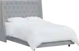 With dimensions of 84"W x 85"D x 56"H, this bed is designed to be a focal point without overwhelming a room. The angled wingback headboard adds a sense of architectural grandeur, while the light gray color helps the piece blend into contemporary color palettes, making the space feel larger. We recommend ensuring you have at least 24 to 30 inches of clearance around the 85-inch depth to maintain a comfortable flow in your bedroom.