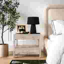 Rustic yet modern, the Ailshie I white nightstand is contemporary while maintaining a natural element to its beauty. Crafted from acacia, finished with a swirling burl grain, and featuring rustic brass accents these beautiful pieces embody textured goodness with yummy neutral tones. Introduce the Ailshie I to your home and enjoy its clean lines and gorgeous burl pattern from any angle.