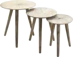 The three round nesting tables included in this set can be displayed together or separated as needed. The Airdrie round tables are made out of mango wood and enhanced with a subtle print that goes with everything. Customer assembly required.