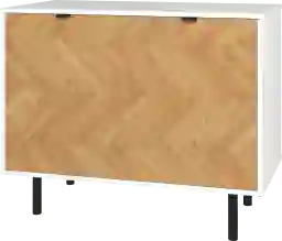 The Airedale I white accent cabinet exudes timeless elegance, its sleek lines and warm wood tones making it an excellent addition to any home. This cabinet features unique wood paneling details and sleek black handles to cabinets to fulfill your storage needs. Customer assembly is required.
