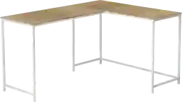 Delivering the best of both worlds, this corner Airleigh computer desk is both spacious and compact, with a streamlined style that is a great choice for smaller home offices. Finished in a natural wood-look laminate, the large desktop easily accommodates everything you need to be productive and has room to spare for displaying decorative items. Supporting the desktop is a slender metal base in a contrasting white finish. The open design of the metal base leaves plenty of room underneath the desktop to stretch your legs and place a computer tower. This L-shaped computer desk is designed for placement in a corner to maximize space in a home office. Customer assembly is required.