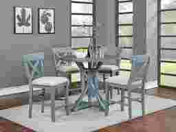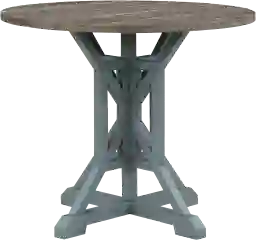 The intricately designed trestle column has been coated with blue for that pop of color and makes the perfect base for the rich, wood tone of the circular top on the Airymeadows blue counter height dining table. Stylish, fun, and an ideal choice for your kitchen nook, game room or studio. Customer assembly is required.