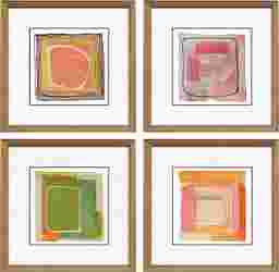The Aisaak artwork features color blocks that are raised mounted and have a hand applied decorative paper matting. Framed in an antique gold wood with embossed weave pattern.