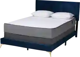 Grant yourself a glamorous respite from the day with the beautiful Alachua blue queen bed. This exquisite piece consists of a solid wood frame padded with foam and upholstered in sumptuous velvet fabric. The sleek lines of the channel-tufted headboard create a sleek bedroom backdrop while offering superb back support when sitting up in bed. The Alachua needs both a box spring and mattress to function properly. Angled metal legs lend a luxurious touch, making the Alachua a stunning addition to the modern bedroom. Customer assembly is required.