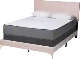 Grant yourself a glamorous respite from the day with the beautiful Alachua pink queen bed. This exquisite piece consists of a solid wood frame padded with foam and upholstered in sumptuous velvet fabric. The sleek lines of the channel-tufted headboard create a sleek bedroom backdrop while offering superb back support when sitting up in bed. The Alachua needs both a box spring and mattress to function properly. Angled metal legs lend a luxurious touch, making the Alachua a stunning addition to the modern bedroom. Customer assembly is required.