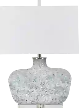 Complete with a pearlized ombre finish the Adriatic Lane lamp brings flair to your living room or bedroom. It features a reverse painted genie bottle base and a white linen tapered shade Partial assembly required.