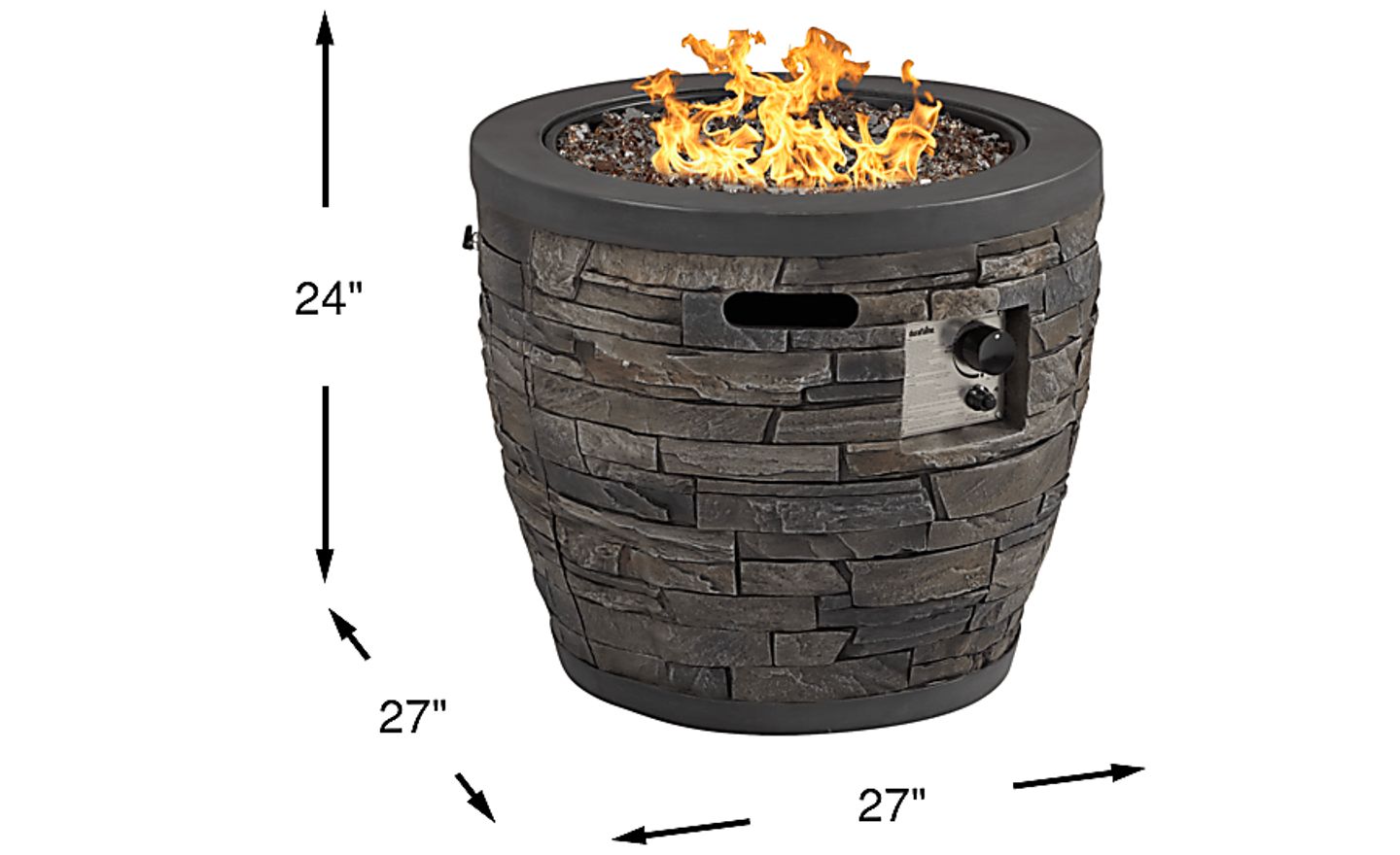 Complete your outdoor gathering space with a warm and cozy Alamo Heights fire pit. Featuring a round, stacked stone appearance to give this piece a classic look accentuated by reflective fire glass. This fire pit accommodates a standard propane tank with 50,000 BTU (not included) and is activated with a push-button igniter. An included lid can protect your fire pit when not in use.