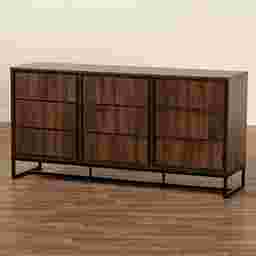 Featuring clean lines and extensive storage capacity, the Alanbrooke sideboard adds stylish utility to any space. The Alanbrooke pairs a black finished metal base with walnut brown finished wood for a sleek, modern look. Six internal shelves, located behind three doors, provide ample surface area to easily organize busy dining spaces. Customer assembly is required.