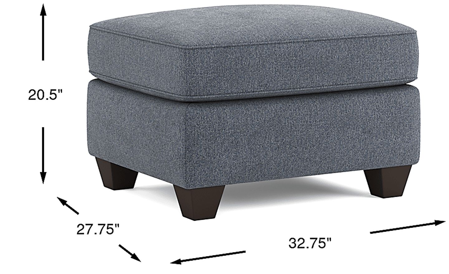 With a depth of 27.75 inches, this ottoman provides a substantial surface area without the overwhelming footprint of an oversized cocktail piece. Its tapered block legs create a sense of openness by lifting the piece off the floor, which helps maintain an airy feel in more compact living spaces or studio apartments.