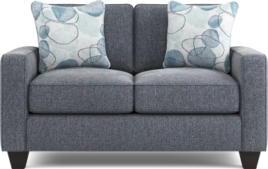 With its clean track arms, tapered block legs, and tailored welted details, this piece fits seamlessly into transitional, contemporary, or modern coastal decors. The woven blue fabric acts as a versatile base that can be styled with vibrant accent pillows to make a statement or paired with neutral textured throws for a more relaxed, smart-casual ambiance.
