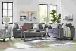 Providing a relaxed atmosphere and open, inviting ambiance, the Alanis Bay sofa exudes everyday comfort with a sophisticated undertone. Upholstered in a woven fabric, this transitional sofa features plush seating, welted details, stylish track arms, tapered block legs and a padded outside frame. Loose seat cushions allow for easy maintenance and adjustment. 100% Woven
