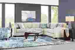 Providing a relaxed atmosphere and open, inviting ambiance, the Alanis Bay sleeper sectional exudes everyday comfort with a sophisticated undertone. Upholstered in woven white fabric, this transitional sectional features plush seating, welted details, stylish track arms, tapered block legs and a padded outside frame. Loose seat cushions allow for easy maintenance and adjustment. Tucked away is a Nature's Bed gel foam sleeper mattress that easily transforms your living room into a cool and comfortable sleep space for overnight guests. Upholstery: 100% Polyester.