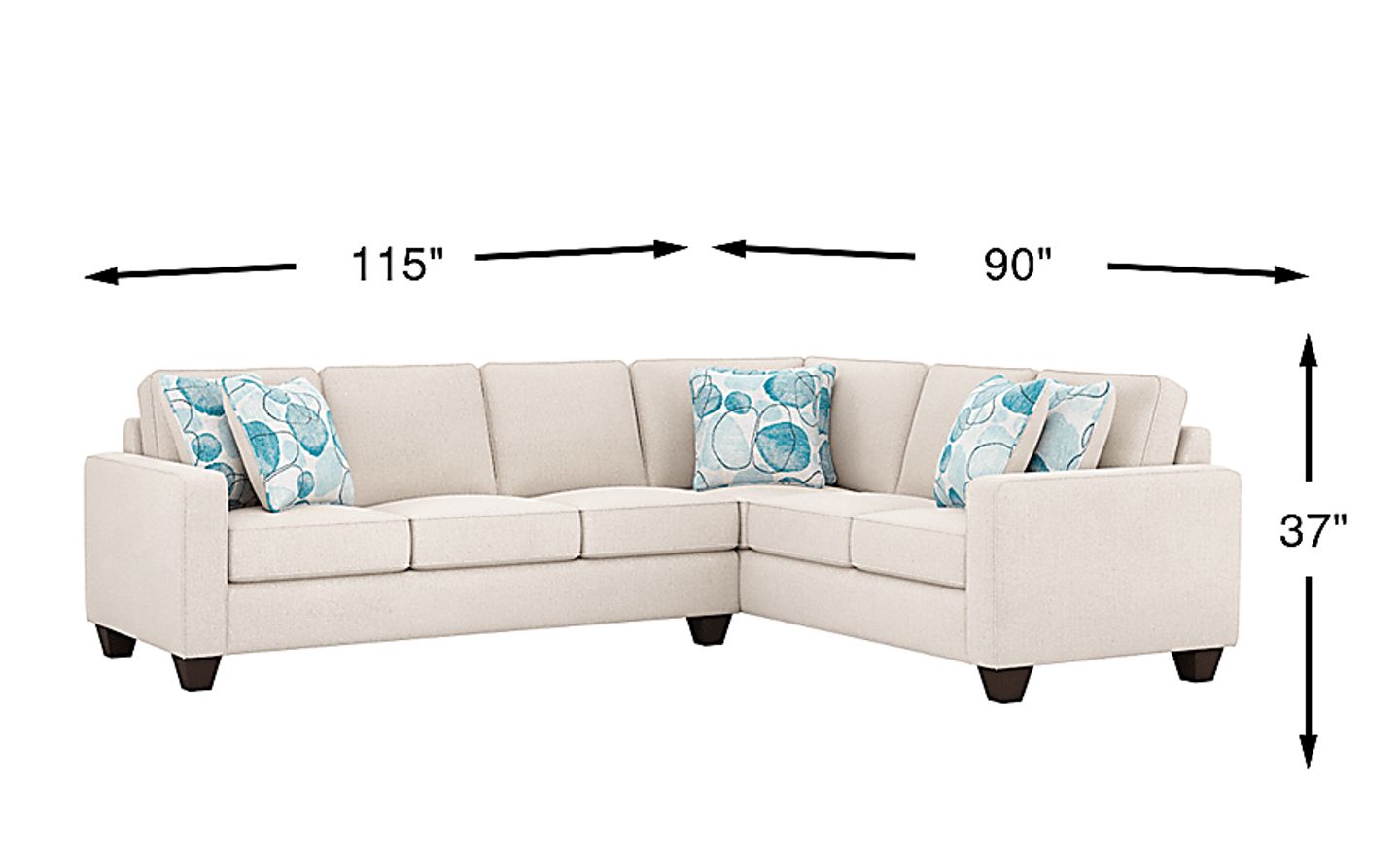 Although this sectional offers a generous 115-inch width, it is specifically designed with a "condo" theme in mind. The track arms provide a modern, streamlined silhouette that maximizes seating area without the extra bulk of traditional rolled arms. The crisp white color and transitional style also help the furniture feel lighter in a room, preventing it from visually overwhelming smaller or narrower living spaces.