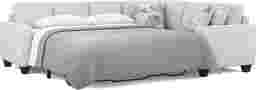 Providing a relaxed atmosphere and open, inviting ambiance, the Alanis Bay sleeper sectional exudes everyday comfort with a sophisticated undertone. Upholstered in woven white fabric, this transitional sectional features plush seating, welted details, stylish track arms, tapered block legs and a padded outside frame. Loose seat cushions allow for easy maintenance and adjustment. Tucked away is a Sealy Royale sleeper mattress that easily transforms your living room into a peaceful guest room. Upholstery: 100% Polyester.