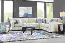 Providing a relaxed atmosphere and open, inviting ambiance, the Alanis Bay sleeper sectional exudes everyday comfort with a sophisticated undertone. Upholstered in woven white fabric, this transitional sectional features plush seating, welted details, stylish track arms, tapered block legs and a padded outside frame. Loose seat cushions allow for easy maintenance and adjustment. Tucked away is a Sealy Royale sleeper mattress that easily transforms your living room into a peaceful guest room. Upholstery: 100% Polyester.