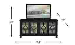The Alanna accent cabinet has a contemporary rustic vibe that adds charm to any room in your home. Crafted from pine and wood solids with alder wood veneers in a black finish, four glass front doors open to reveal shelves for storage or display.