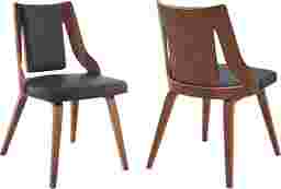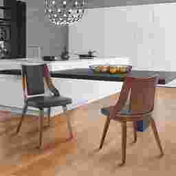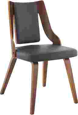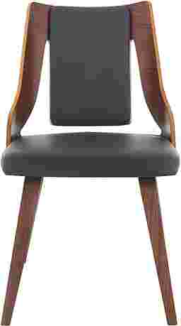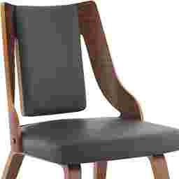 The Alanor gray look of leather and walnut wood dining chair is the sophistication and refinement your dining room has been looking for. The seatback hovers over the seat cushion - leaving you with a unique image of exuberance. The wood frame is strong and stable and its accents are pleasing to the eye. The seat cushion is filled with foam padding - keeping you and your guests comfortable while you join each other for a nice meal. Customer assembly is required.