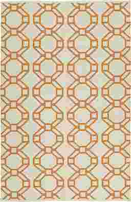 Add a fresh new look to your indoor or outdoor space with the Alaric rug. Due to an innovative positive/negative weaving technique, the rug is reversible and the double sided bright orange geometric pattern will transform any area for years to come. Handmade in India with 100% Polyester. Spot clean as needed. For deeper cleaning, contact your local rug cleaning professional.
