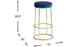 Bring contemporary flair to mealtime with the Alastor barstool. With a metal frame crafted in a golden finish, this stunning bar-height stool's gorgeous profile is rounded out by a cushy velvet seat in a rich blue tone. Welting around the rim of the attached, backless seat provides an elegant final touch.