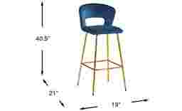Bring contemporary flair to mealtime with the Alastor cut out barstool. With a metal frame crafted in a golden finish, this stunning bar-height stool features a cushy seat upholstered in rich blue velvet. A cut-out shape on the attached seat provides an elegant final touch.