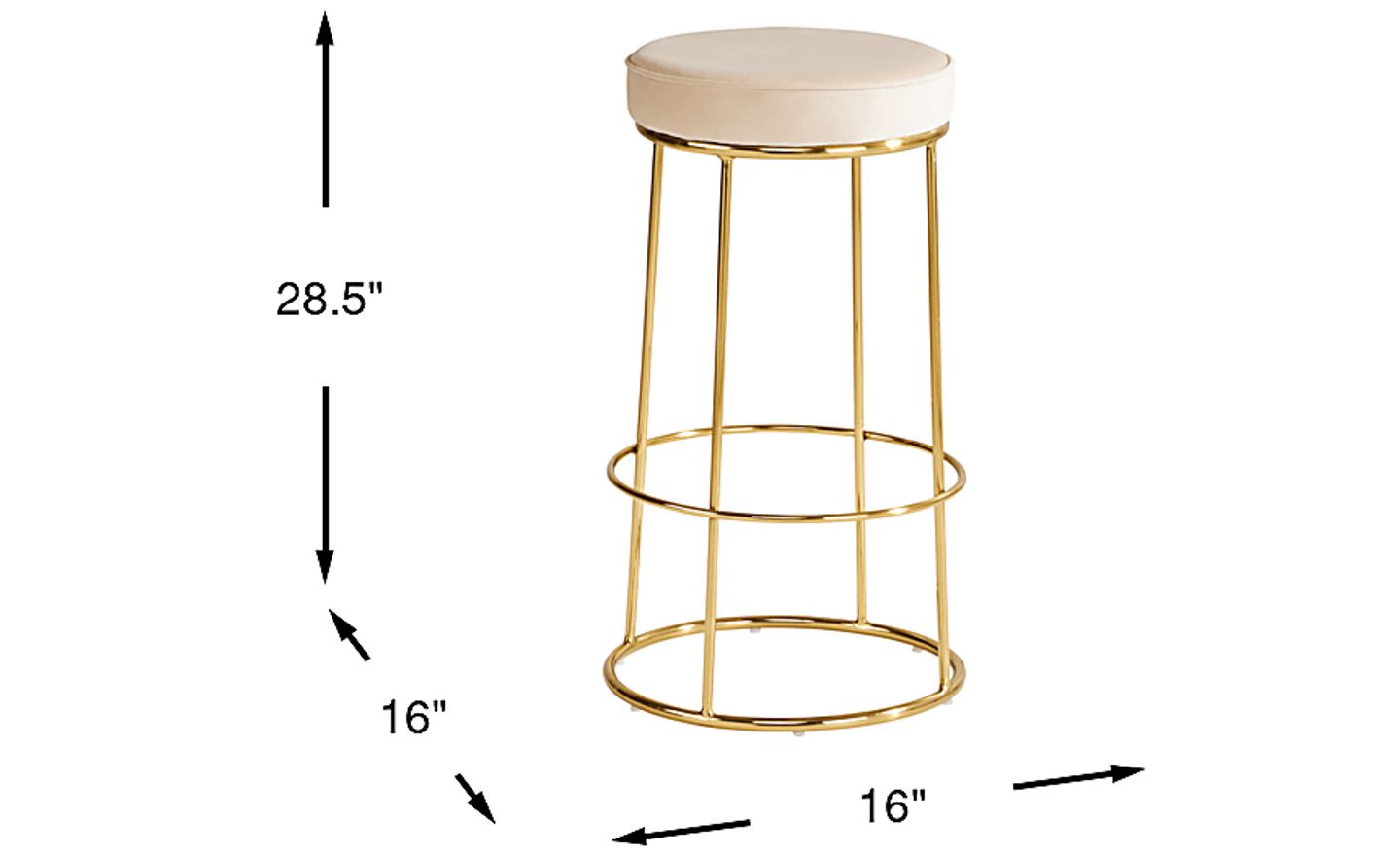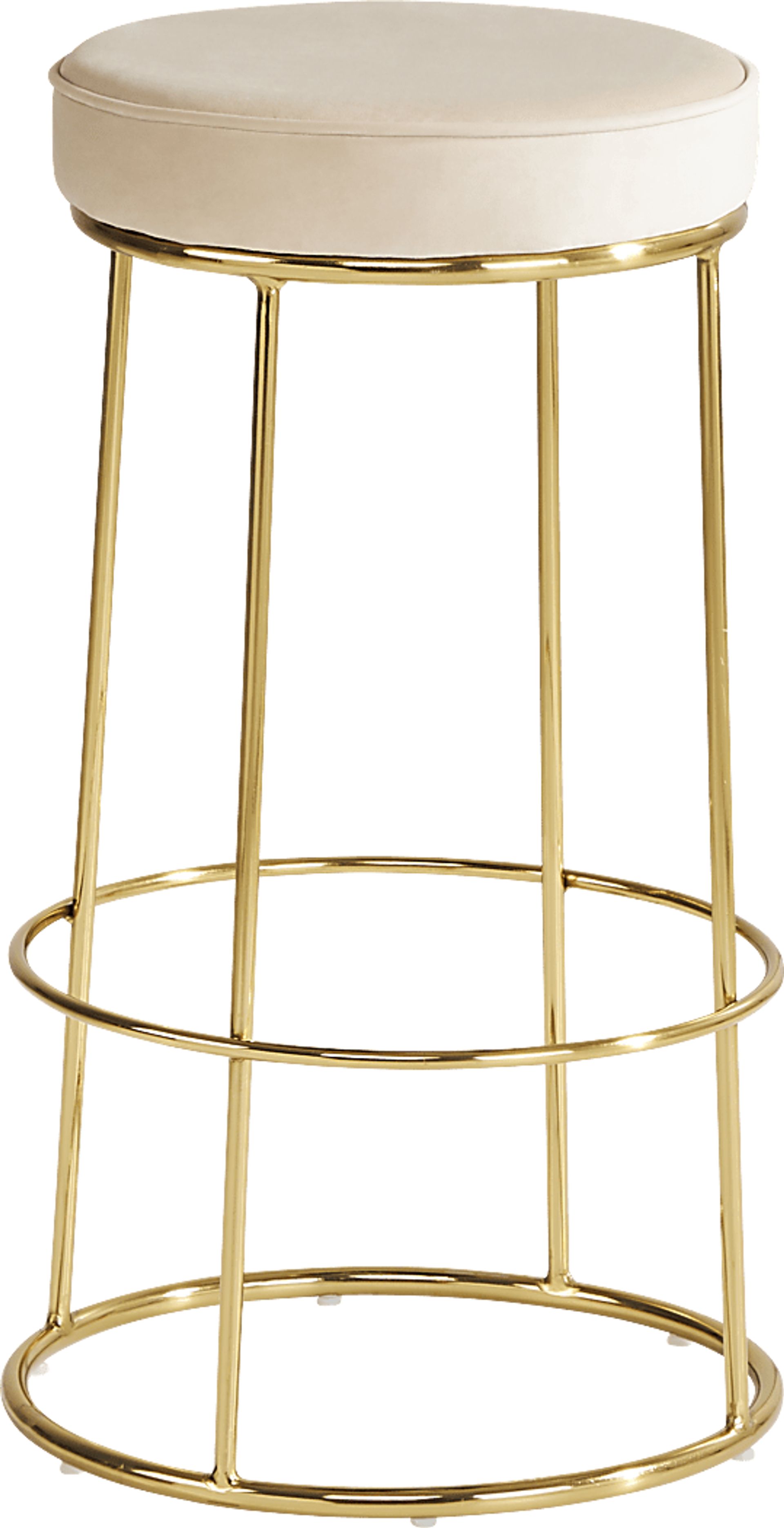 Bring contemporary flair to mealtime with the Alastor barstool. With a metal frame crafted in a golden finish, this stunning bar-height stool's gorgeous profile is rounded out by a cushy velvet seat in neutral khaki for easy styling with other pieces in your dining room. Welting around the rim of the attached, backless seat provides an elegant final touch.