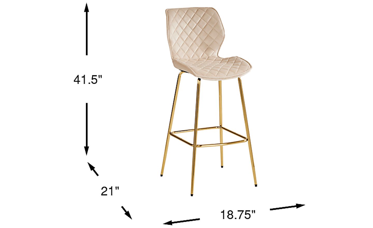 Bring contemporary flair to mealtime with the Alastor diamond barstool. With a metal frame crafted in a golden finish, this stunning bar-height stool features a cushy seat upholstered in neutral khaki velvet for easy styling with other pieces in your dining room. A diamond welt pattern on the attached seat provides an elegant final touch.
