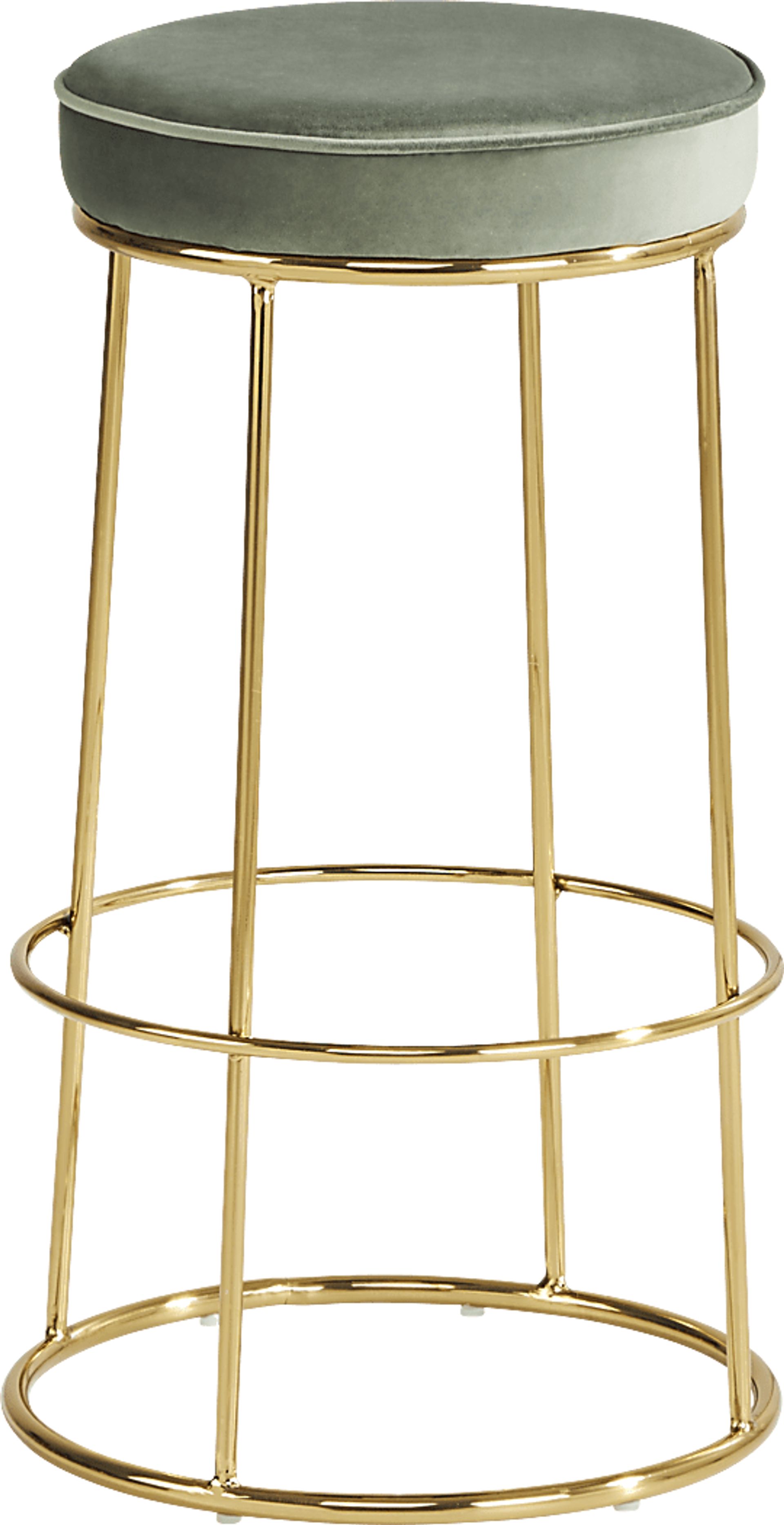 Bring contemporary flair to mealtime with the Alastor barstool. With a metal frame crafted in a golden finish, this stunning bar-height stool's gorgeous profile is rounded out by a cushy velvet seat in an amazing sage color. Welting around the rim of the attached, backless seat provides an elegant final touch.
