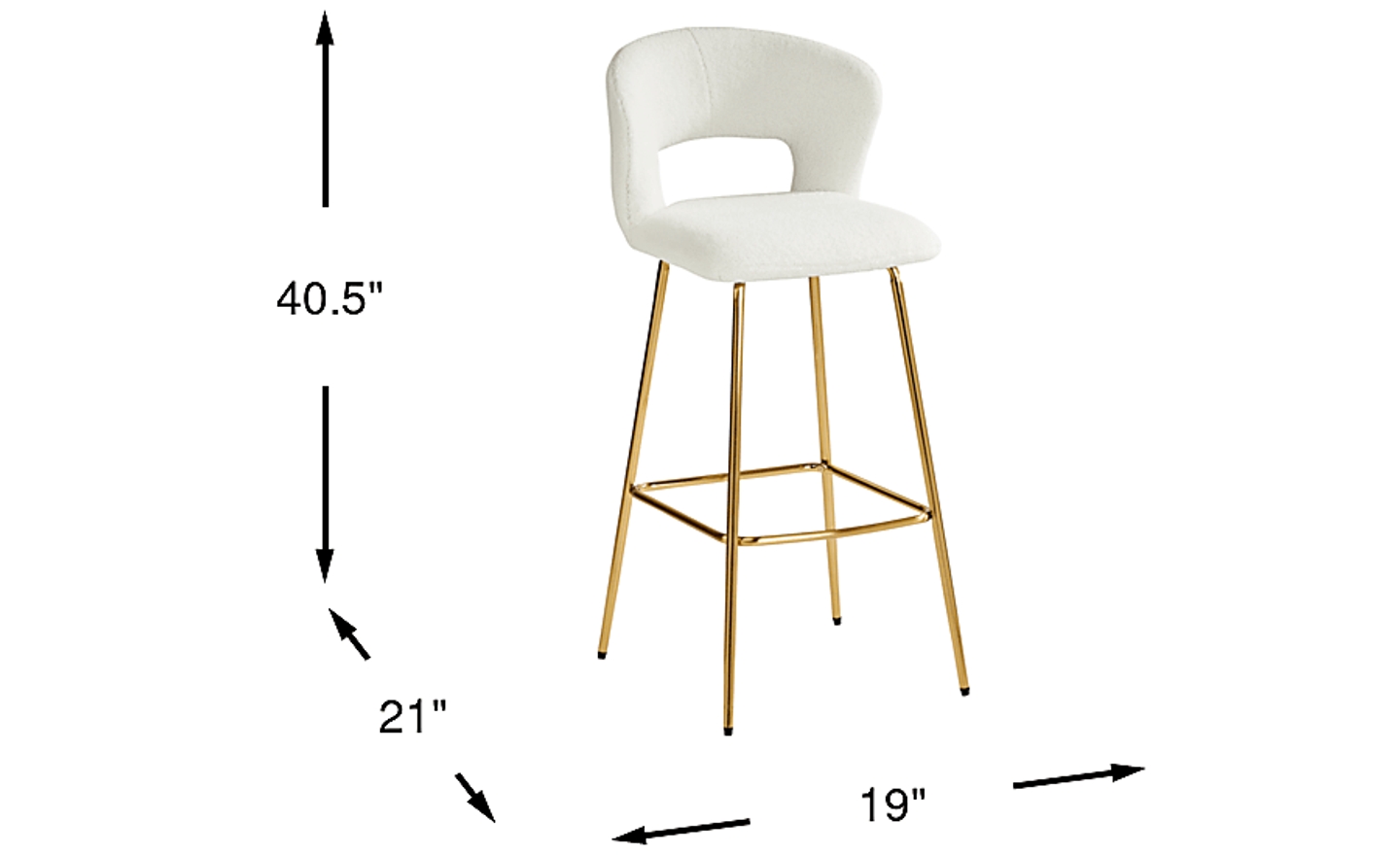 Bring contemporary flair to mealtime with the Alastor cut out barstool. With a metal frame crafted in a golden finish, this stunning bar-height stool features a cushy seat upholstered in neutral white velvet for easy styling with other pieces in your dining room. A cut-out shape on the attached seat provides an elegant final touch.