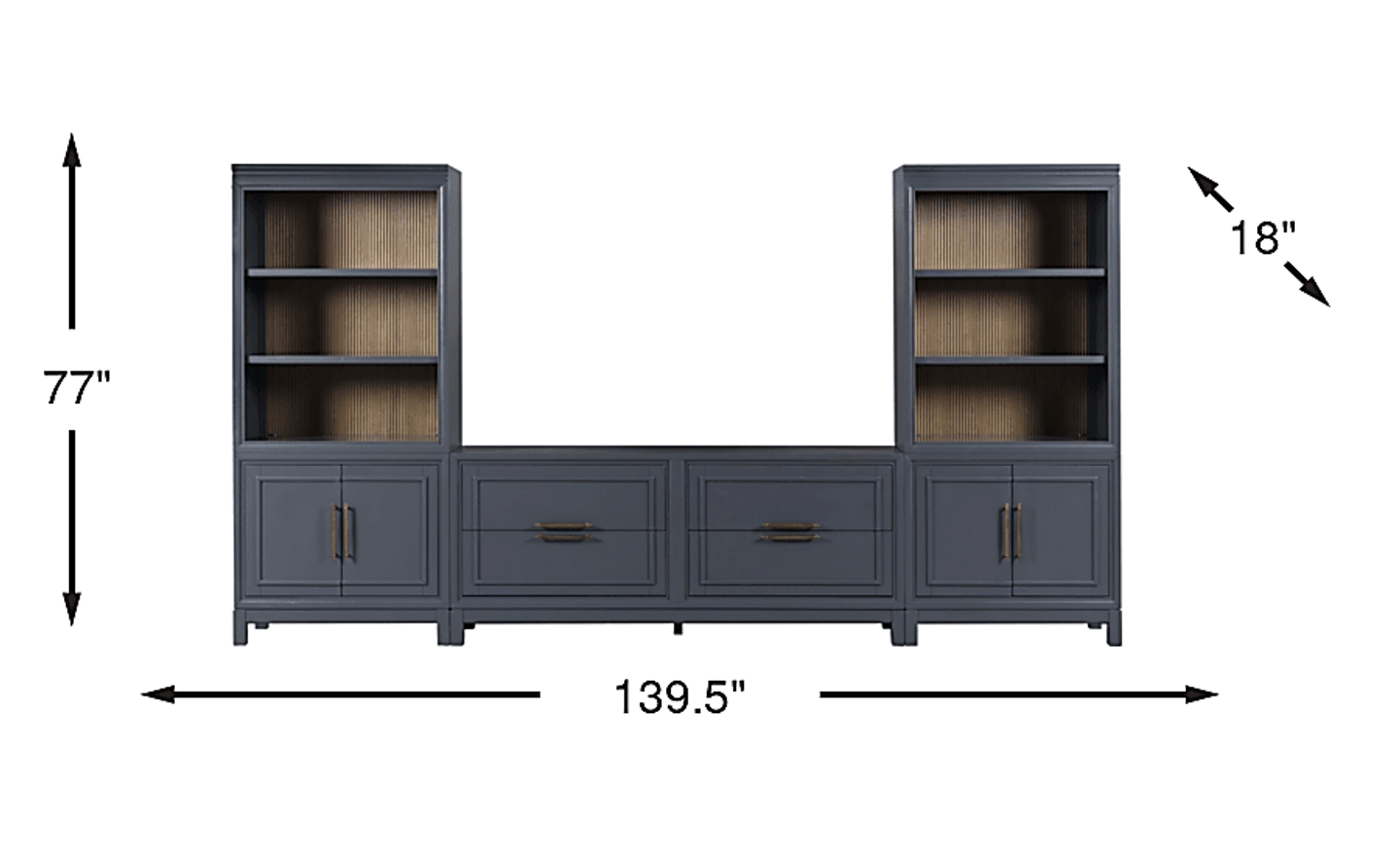 With a total width of 139.5 inches—nearly 12 feet—and a height of 77 inches, this unit is specifically engineered to anchor expansive walls and large living spaces. Its substantial scale allows it to serve as a definitive focal point in suburban homes or open-concept layouts, providing the authoritative presence of a custom built-in unit without the need for permanent structural changes.