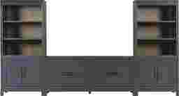 Yes, this 3-piece configuration is designed for maximum functionality. It includes six open shelves (three on each pier) for showcasing collectibles or books. For items you prefer to keep out of sight, the unit offers four decorative panel drawers in the main console and two additional closed cabinets at the base of the piers, making it an excellent choice for organizing media components, gaming accessories, and household clutter.