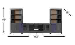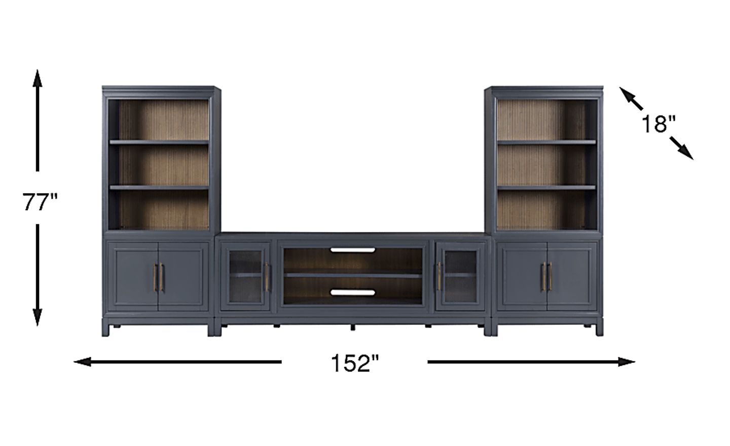 Standing at 77 inches tall and 152 inches wide, this unit has the significant vertical and horizontal scale required to anchor rooms with high ceilings. Its transitional design and bold navy finish provide a strong visual focal point, ensuring the furniture feels proportional rather than being overwhelmed by a large wall space.