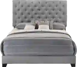 A rolled and tufted headboard in addition to nailhead accents provide an elegant touch to the Albritt full bed. It features gray fabric and adjustable headboard for convenience and comfort. This bed provides flexible placement and opportunity to style the room to fit your needs. Customer assembly is required. Foundation required. Mattress and foundation sold separately.