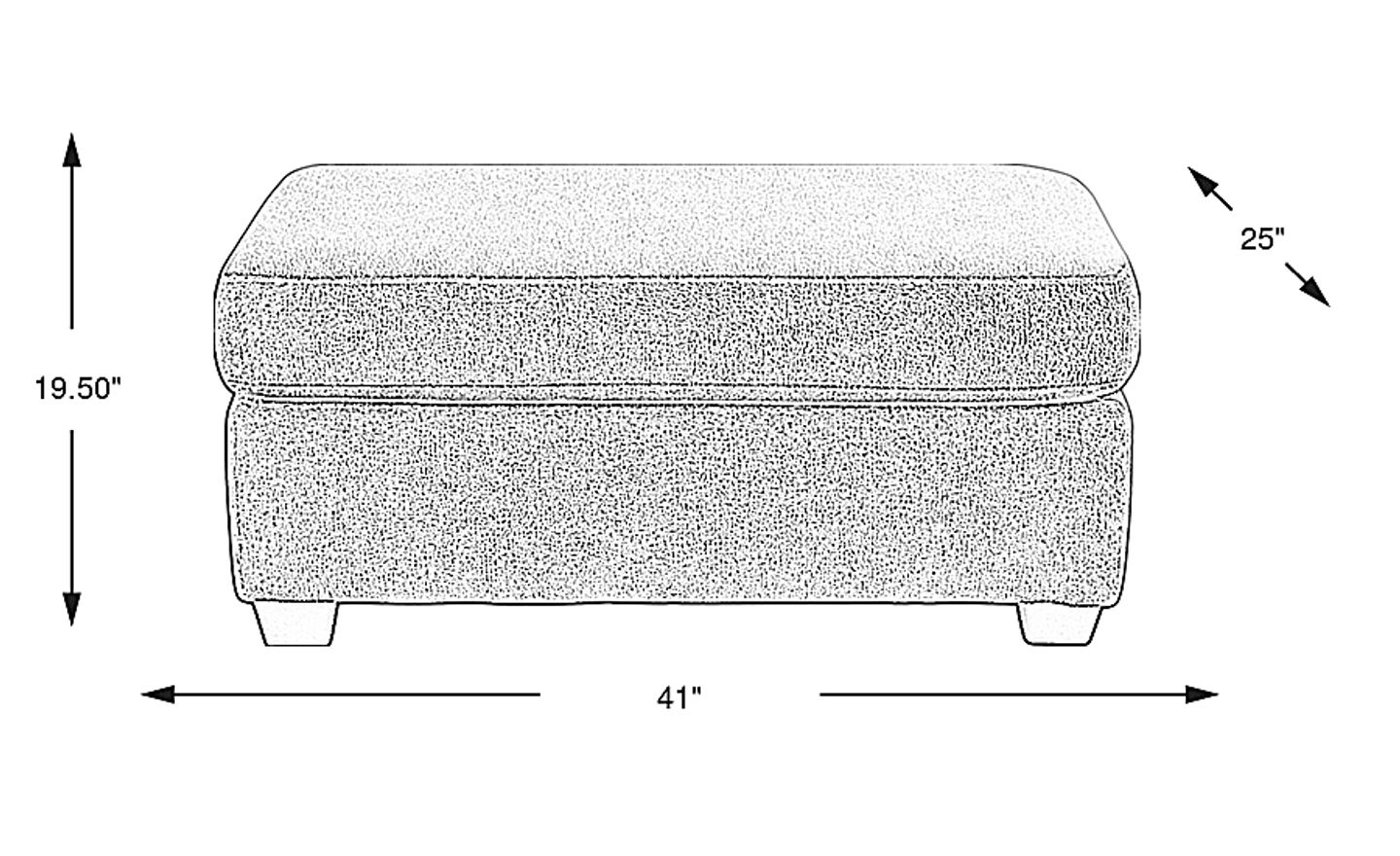 Interior design standards often suggest the "two-thirds rule," where an ottoman should be approximately two-thirds the length of your sofa for visual balance. This 41-inch ottoman is perfectly scaled to complement the Alcott Gray Sofa or other standard-sized seating. Its 19.5-inch height is designed to be level with or slightly below most sofa cushions, ensuring an ergonomic and comfortable transition when used as a footrest.