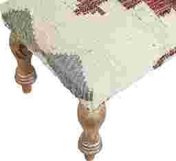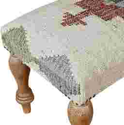 This piece is upholstered in a durable blend of jute and cotton reinforced with polyester. While the jute and cotton provide a natural, artisanal texture, the addition of polyester increases the fabric's overall tensile strength. Furthermore, the multi-color pattern and distressed finish are strategically chosen to help disguise minor wear and dust, which is common in high-traffic zones.