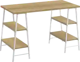 Absolutely. The combination of the natural wood-look top and the crisp white metal sawhorse legs creates a versatile, contemporary aesthetic. This "industrial-light" style allows the desk to blend seamlessly into modern offices, coastal-themed rooms, or even minimalist urban lofts, offering a professional appearance that doesn't feel overly corporate.