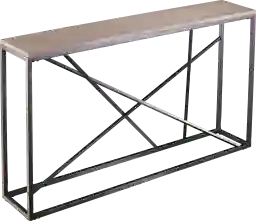 Create a style manifesto with this narrow, geometric Alderton console table. Gray metal contrasts with taupe faux stone, creating a sleek, mixed media look. Skinny console keeps a slim profile in the family room under your wall mounted TV or as a space sa