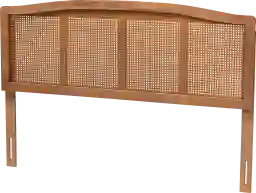 This mid-century inspired modern Aldrich queen headboard adds warmth to your bedroom or guest room. Constructed from synthetic rattan and finished in walnut brown. Featuring six pre-drilled holes to provide five different height configuration options on the back of the headboard. Customer assembly is required.