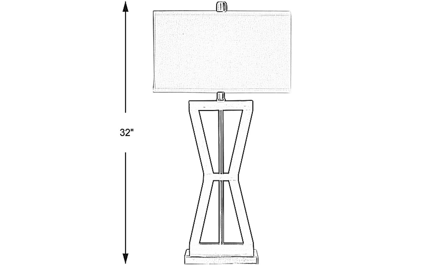 With its distinctive geometric hourglass design, the Aldwyn table lamp makes a sleek addition to any room. Featuring a wood and brushed steel finish, this lamp is topped with a rectangular white shade and can accommodate one maximum 60 watt bulb.